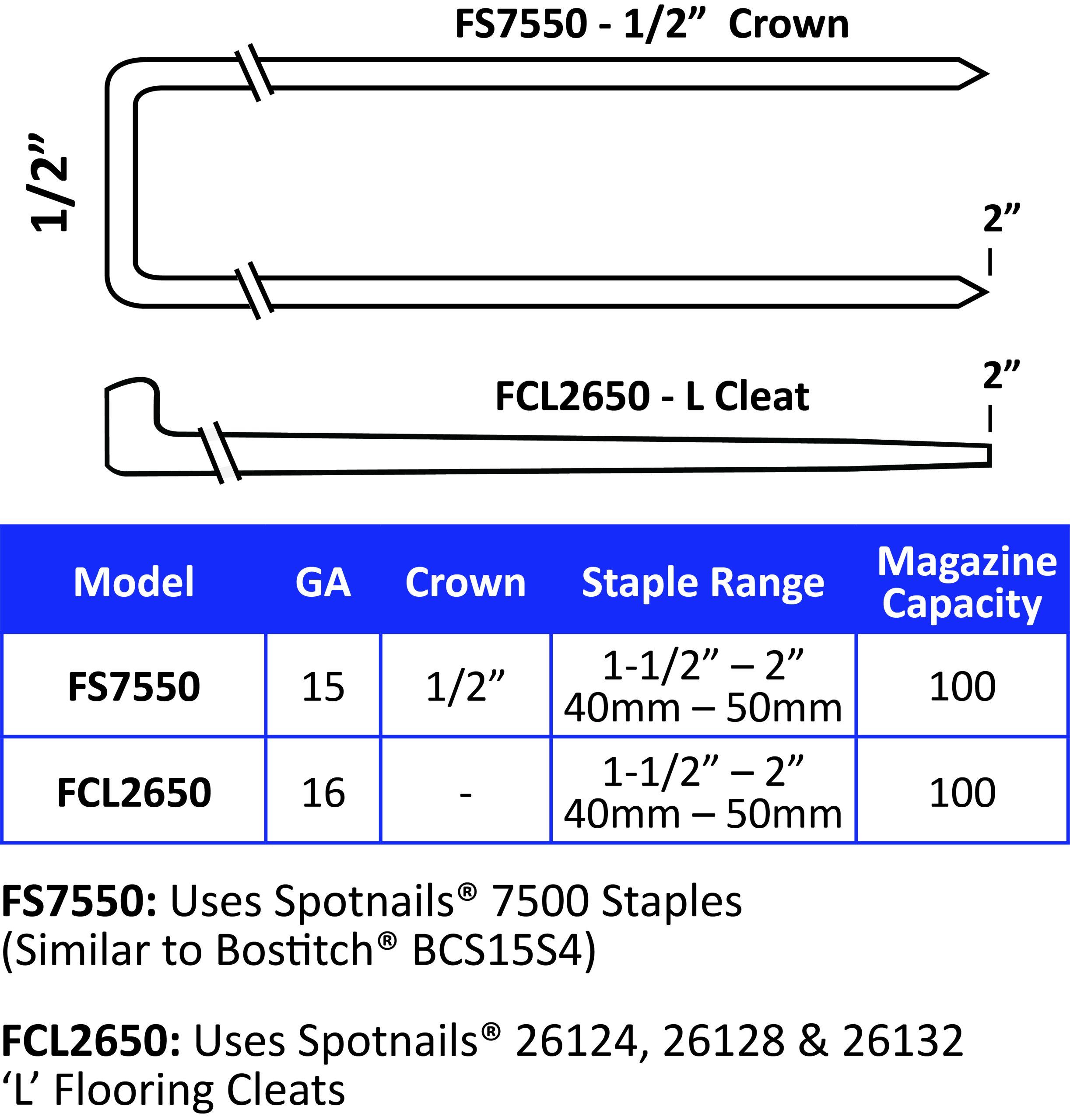 38mm (1-1/2) Staples BCS15 Series (SPOTNAILS) 7512PG-10.3M